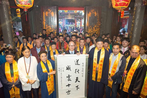 中国台湾网12月6日绵阳讯 11月19日至30日,由四川省海峡两岸交流促进会、四川省民族宗教委、四川省道教协会与台湾高雄道德院联合举办的“道行天下·青城山祖天师巡台祈福”活动在台隆重举行。成都青羊宫供奉的道教至高尊神——太上老君、青城山祖天师、江油金光洞中坛元帅——三太子哪吒神像赴台,在岛内全境巡游。江油陈塘关、乾元山金光洞、翠屏山哪吒道观负责人等一行8人护驾哪吒神像赴台巡游,开展民俗文化交流活动。