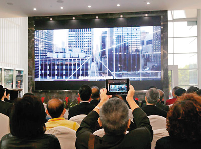 一位台商对蓉欧快铁十分感兴趣,饶有兴趣地记录下蓉欧快铁的介绍短片。(图片由四川省台办提供)