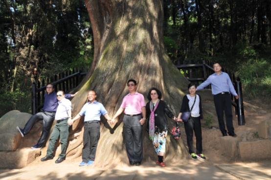 胡幼圃等台商参观三国蜀道文化生态旅游景区翠云廊。(图片来源:广元市台办)