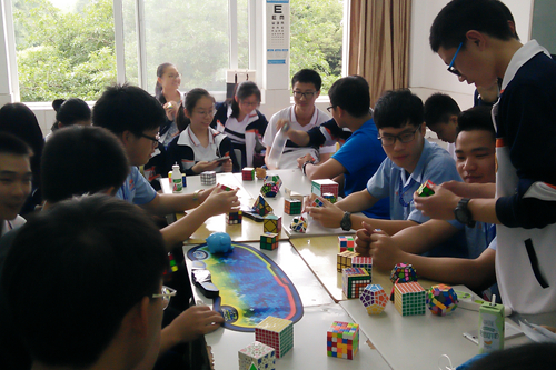 和结对伙伴一起,台东高中的同学们走进乐山一中的教室,感受不一样的课堂。随后,大家又来到运动场,跟着体育老师练起了中华武术,体验欢乐生动的阳光体育课。下午,大家还来到社团活动教室,航模社、摄影社、魔方社、DIY工坊、实验化学社、印色荼章、模拟联合国……丰富多彩的社团生活,让台东高中的同学们乐在其中。