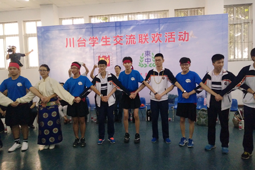 民乐演奏、藏族舞表演,为了欢迎远道而来的结对伙伴,乐山一中的同学们送上了精心准备的节目。台东高中的同学们也礼尚往来,表演了独具特色的台湾少数民族歌谣。两校学生手拉手跳起舞,将交流联欢活动推向高潮。