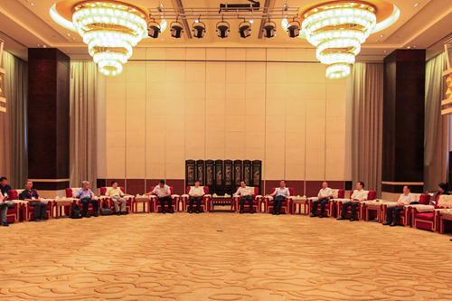四川省常务副省长王宁(右二)与国务院台办主任助理周宁(左二)交谈,左一为中国记协书记处书记季星星。(图片来源:四川省台办)