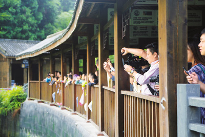 两岸记者和其他观众一起,围着熊猫不停拍照。