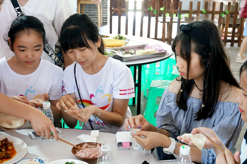在豆腐干博览馆内,参加体验营的同学们推石磨、包馄饨,亲自动手制作午餐,让劳动体验变得更加有趣,在品尝美食的同时了解中华民族传统饮食文化,留下深刻的记忆。