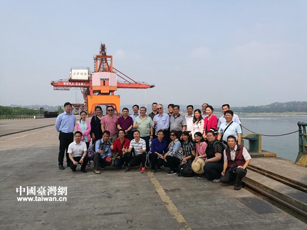 考察团一行在泸州港合影留念。(图片来源:泸州市台办)