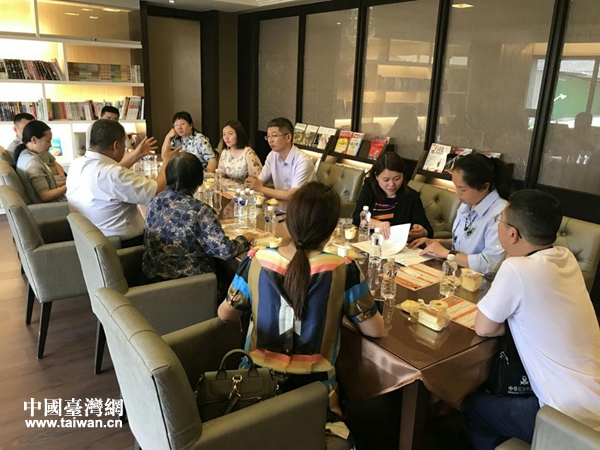 参访团和高雄物业管理协会交流物业管理和小区治理经验。(图片来源:绵阳市台办)