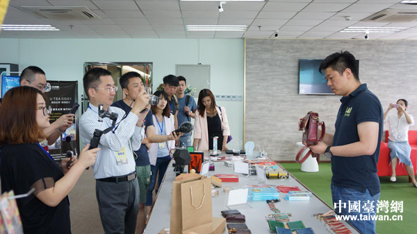 两岸记者在德阳市海峡两岸青年创业园采访拍摄。(图片来源:德阳市台办)