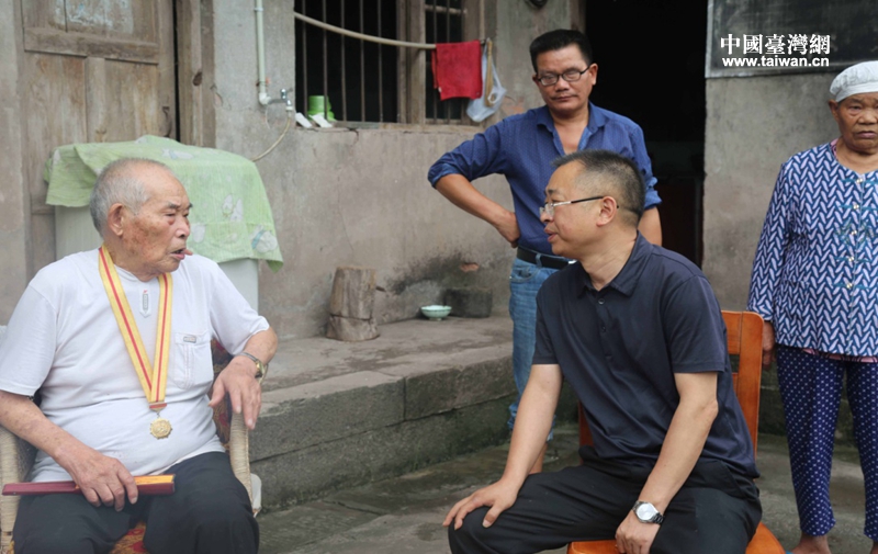 达州市台办主任黎玉维与原国民党抗战老兵交谈(图片来源:达州市台办)