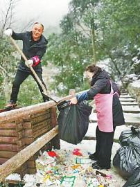 而一周之前的元旦假期,这种情况更加严重。“当天我们上山的时候是上午10点,山上到处是垃圾,几乎每一级台阶都有!”回忆当日的九峰山旅游经历,成都游客曹女士称很不愉快:所有垃圾桶全部爆满,还有很多垃圾溢出来散落在周围,上山栈道内外都是成堆的垃圾,把美丽的雪景覆盖了。尽管所有垃圾桶都满满当当,但没有看到有保洁员清理垃圾。