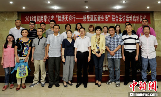 8月8日,2013海峡两岸记者“锦绣天府行——感受藏区新生活”联合采访活动在成都启动。图为联合采访活动启动仪式。安源 摄