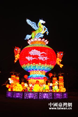 中国台湾网2月13日台中消息 目前,正在台中市文心森林公园举办的中台湾元宵灯会上,来自四川自贡的彩灯引人注目。这是自贡彩灯继2011年和2012年亮相中台湾元宵灯会惊艳全岛后,应台中市政府观光旅游局和台中市旅游商业同业公会邀请赴台参展。