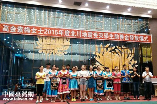 中国台湾网7月23日成都讯 7月21日至22日,台湾少数民族民意代表高金素梅如约来川向她资助的20个北川县羌族孩子发放2015年度资助金。