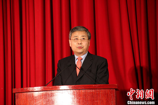 图为28日晚山东省长郭树清致辞。冽玮 摄
