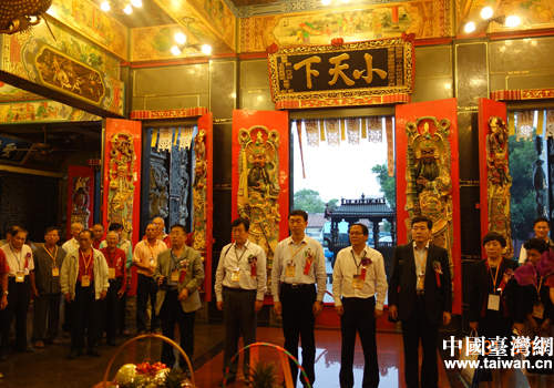 交流团一行首先参观了善化东岳殿,随后举行了“泰山印象——泰山丽景特展暨泰安市人民政府惠赠泰山摄影图片”赠送仪式,王云鹏市长代表泰安市政府向善化东岳殿赠送了40幅近年来台湾南部地区东岳大帝、碧霞元君信众在泰山举办祭拜祈福活动的资料图片和泰山风光摄影图片,同时也向善化东岳殿和广大台湾东岳大帝和碧霞元君信众送上了真诚的祝福。
