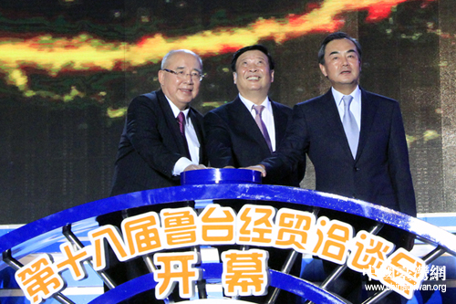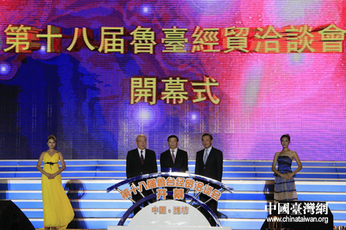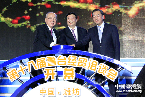 中国台湾网8月31日潍坊消息 由国务院台办、山东省政府联合主办的第十八届鲁台经贸洽谈会,31日晚间在山东潍坊开幕。中国国民党荣誉主席吴伯雄,中共中央台办、国务院台办主任王毅,中共山东省委副书记、山东省长姜大明等出席并启动开幕仪式。