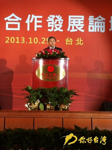 你好台湾网台北10月29日消息 (记者 乐艳艳 王坤)2013山东周——两岸合作发展论坛今天上午9时30分在台北举行。山东省省长郭树清率山东省经济文化交流团及各市分团成员参会,台湾政界、经济界知名人士也参加了今天的论坛。