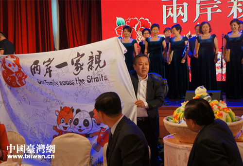 晚会上,台北市立动物园合唱团与威海市代表团成员合唱了台北市立动物园为入住威海的台湾梅花鹿、长鬃山羊创作的《繁星点点·喜乐洋洋》和威海为两对动物创作的《珍贵的情谊》两首歌曲,深情表达两岸亲情友情。现场还展示了为祝贺大熊猫“圆仔”出生而制作的威海花饽饽《长命百岁》、金鱼等面塑,台湾梅花鹿、长鬃山羊入住威海时签字留念的旗帜及制作的动物玩偶。(中国台湾网、威海市台办联合报道)