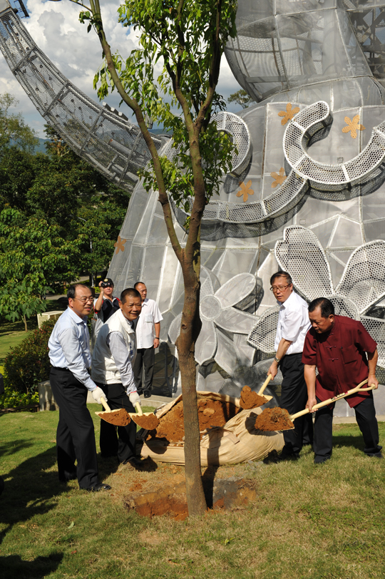 5月27日,李鸿忠在客家大院种下一棵香樟树