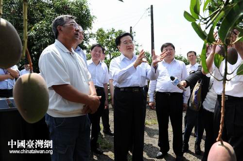 湖北省长王国生在台南玉井乡农户的农场参观。(湖北省台办 陆胜 摄)