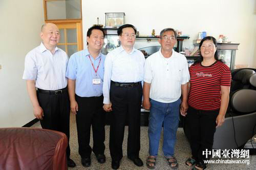 王国生走访农户后与农户家人合影。(湖北省台办 陆胜 摄)