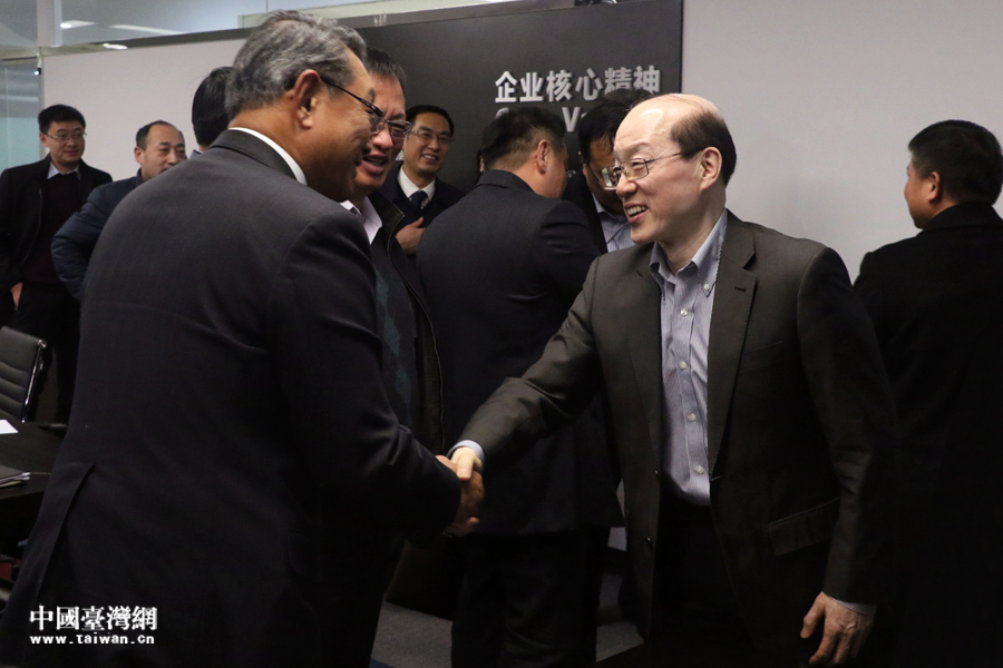 1月16日,中央台办、国务院台办主任刘结一在安徽省合肥市走访调研台资企业,与当地台商、台青、台籍师生等各界台胞交流座谈。图为刘结一主任与参会人员握手致意。(中国台湾网 尹赛楠 摄)