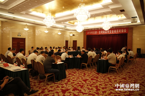 2018年天津·台湾商品博览会动员对接会现场。(图片来源:天津市台办)