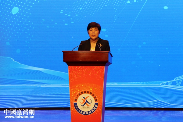 山东省副省长任爱荣在第24届鲁台经贸洽谈会开幕式上致辞。(中国台湾网 赵苗青 摄)