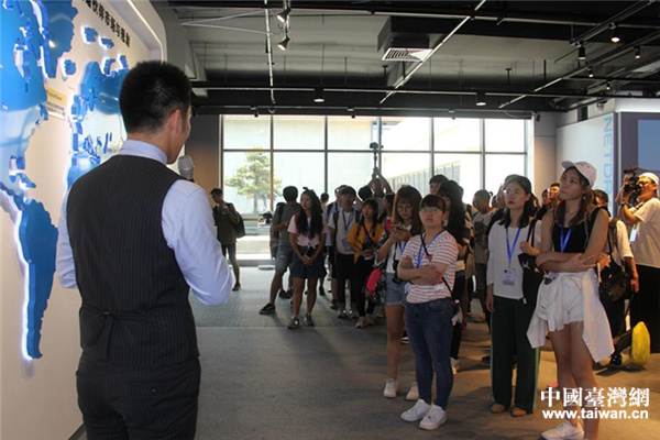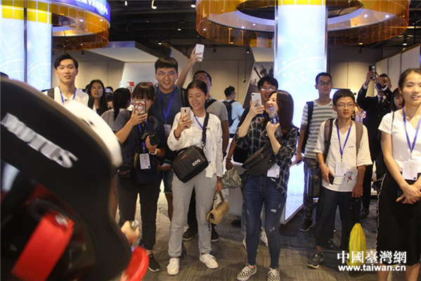 中国台湾网7月21日福州讯 (记者 王莉婷)7月20日,“情系青春——两岸青年榕城行”活动团抵达了大陆科技企业——网龙网络公司,来自两岸的80名传媒学子在网龙工作人员的带领下参访体验了网龙VR体验区,并以分组形式分别采集了8位网龙台湾就业者的故事,感受了他们在大陆的工作经历。