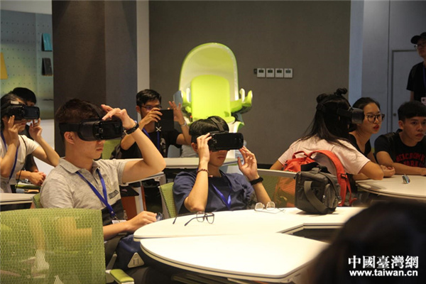 两岸学子佩戴VR眼睛,感受海底世界。(中国台湾网 王莉婷 摄)
