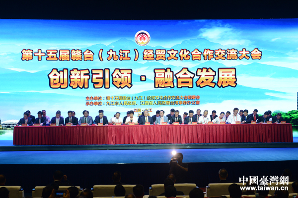 8月30日上午,第十五届赣台(九江)经贸文化合作交流大会(简称赣台会)在江西九江开幕。中共中央台办、国务院台办主任张志军,江西省省长刘奇,台湾三三企业交流会会长江丙坤,全国台企联会长王屏生等出席了大会,本届“赣台会”参会人数约800人左右,其中台湾嘉宾约500人。现场共签约79个台资入赣项目,签约合同金额达40.6亿美元。