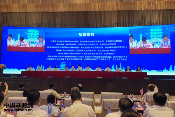 论坛现场,台湾联发科技武汉研发中心项目、纬创软件大陆总部项目、敏实集团电动车零部件生产基地项目、镭崴PCB生产线项目、台湾生物技术研究院项目等7项合作成功签约。