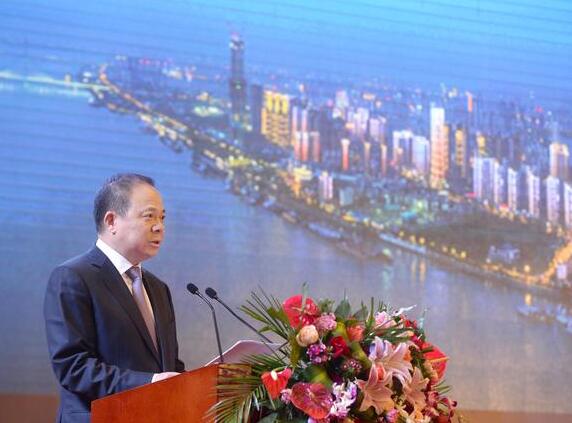 第十四届湖北·武汉台湾周的汉台经贸合作大会,陈一新致辞。记者周超 摄