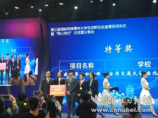 本次大赛于今年9月启动,鄂台两地共有214件作品参赛,涵盖互联网、电子商务、智能硬件、文化创意、生物医药、现代农业等多个领域。大赛共决出特等奖1名、一等奖2名、二等奖5名、三等奖12名,所有获奖团队将获得总额约31万元的创业启动资金。