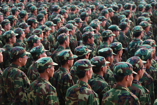 入学时,学校规定所有的港澳台学生以及海外留学生都必须接受国情教育,以便更好地融入大陆的校园,而大陆的学生则必须参加所谓的军训。台湾现在多已取消了军训,使得我对这项听起来很神秘却又是“全国大学生的集体记忆”的活动感到好奇,记得在军训结训当天,我逃掉了讲座跑去主席台边上围观。烈日下的方阵,花花绿绿的迷彩规律地散布在红色海洋中,如巨浪一般聚合又离散。
