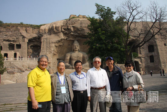 部分台湾新闻媒体人在石窟前合影留念。(摄影:虞鹰)