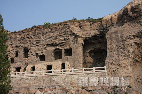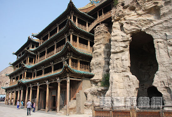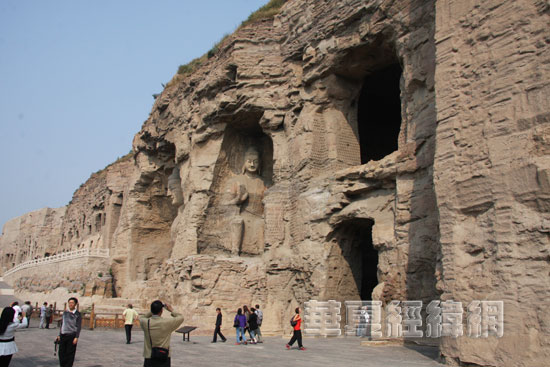 云冈石窟多次进行了大规模地维修工程,修建阁楼保护石窟佛像。(摄影:虞鹰)