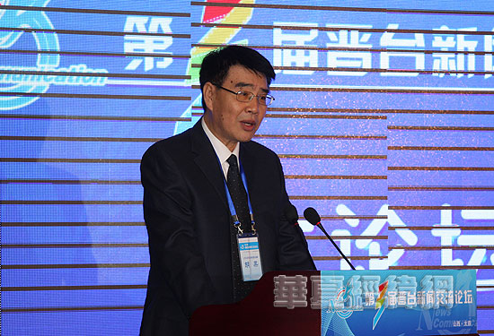 《山西日报》副总编辑胡果,在主论坛上做题为《比肩携手 共赢未来》的演讲。(摄影:虞鹰)