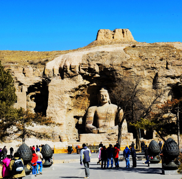 云冈石窟位于山西省大同市西郊武州山南麓,石窟依山开凿,东西绵延1公里。现存主要洞窟45个,大小造像51000余尊,为我国规模最大的古代石窟群之一,与敦煌莫高窟、洛阳龙门石窟和天水麦积山石窟并称为中国四大石窟艺术宝库。1961年被国务院公布为全国首批重点文物保护单位,2001年12月14日被联合国教科文组织列入世界遗产名录,2007年5月8日被国家旅游局评为首批国家5A级旅游景区。