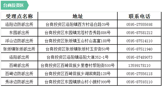 福建省公安厅副厅长杜清森表示,按照公安部的要求,全省要确定港澳台居民申请居住证受理点,9月1日前向社会公布。从我省实际出发,本着“就近、便利”原则,为最大程度方便港澳台居民申办居住证,省公安厅决定全省公安户籍办理窗口均设立受理点,共有1217个(其中,1052个公安行政派出所、150个公安边防派出所的户籍办理窗口、15个行政服务中心公安办证窗口),所有受理点的详细地址都将对外公开。9月1日恰逢星期六,我省公安机关受理窗口将正常上班,受理港澳台居民居住证申请。