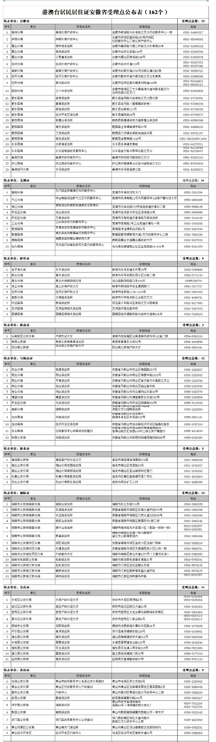 9月1日起 ,符合申领条件的港澳台居民可在安徽省162个点办港澳台居民居住证了。