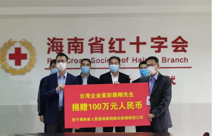 2月26日,受台湾企业家、中国航运荣誉董事长彭荫刚委托,海南省委统战部工作人员将彭先生捐赠的100万元人民币转交海南省红十字会,此笔善款将专项用于海南省人民医院抗击新冠肺炎疫情。这是截至目前台胞为支援海南抗击疫情捐赠的最大一笔款项。