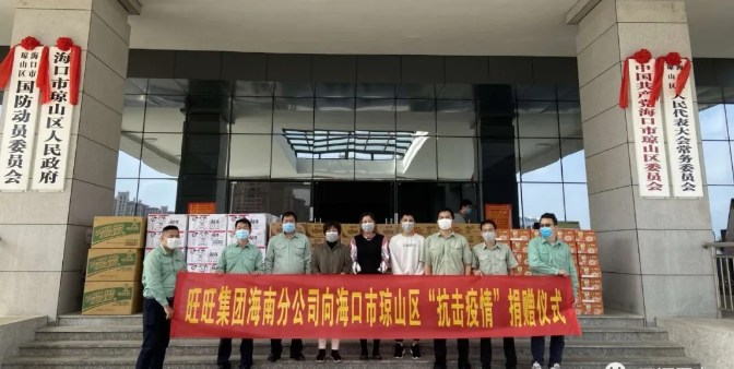 2月25日,旺旺集团海南分公司向海口市四个区共捐赠价值近20万元的食品饮料