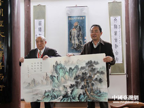 中国台湾网11月7日贵阳消息 日前,参加“筑台两地书画艺术交流展”的部分台湾艺术家来到贵州大学中国文化书院,向学校捐赠精心创作的书画作品。