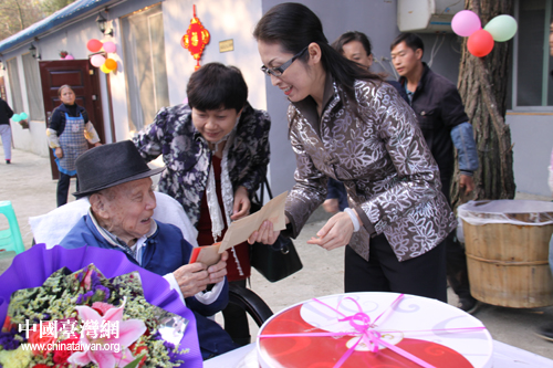 贵州省台办联络处处长成高荣受省委统战部副部长、省台办主任周素平的委托,向杨老先生表示衷心的祝福。(贵阳市台办 段小芬 摄)