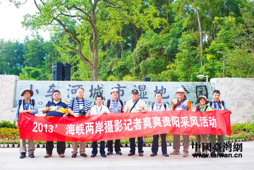 中国台湾网8月28日贵阳消息 8月8日,参加“2013’海峡两岸摄影记者爽爽贵阳采风活动”的摄影记者们来到贵阳市小车河城市湿地公园,用手中的像机全程记录了“2013中国·贵州‘九黎十八寨’民族博览会”启动仪式。