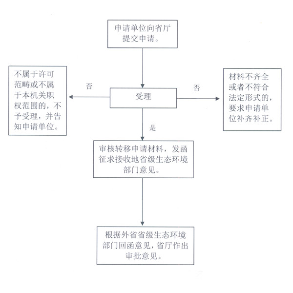 1.《固体废物污染环境防治法》(2016修正)第五十九条:“转移危险废物的,必须按照国家有关规定填写危险废物转移联单。跨省、自治区、直辖市转移危险废物的,应当向危险废物移出地省、自治区、直辖市人民政府环境保护行政主管部门申请。移出地省、自治区、直辖市人民政府环境保护行政主管部门应当商经接受地省、自治区、直辖市人民政府环境保护行政主管部门同意后,方可批准转移该危险废物。未经批准的,不得转移。”