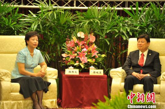 广西壮族自治区政协主席陈际瓦会见花莲县长傅崐萁。 孙洁 摄