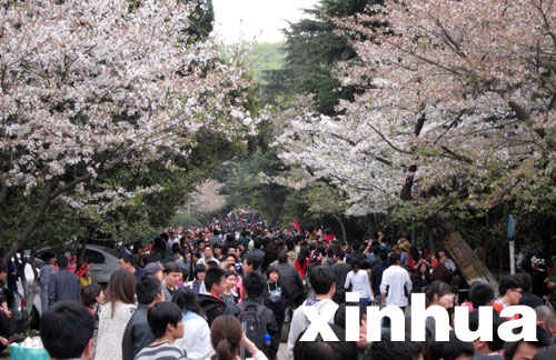清明小长假期间,樱花观赏胜地武汉大学每日迎来全国各地的游客10多万人次。新华社记者 郝同前摄