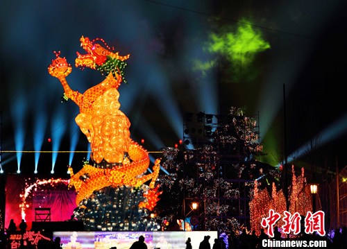 图为南京中华门城堡北广场,一条由台湾民间艺人制作而成的巨龙彩灯“神龙腾跃”的嘴里喷出彩烟,在灯光的衬托下显的格外抢眼。中新社记者 泱波 摄