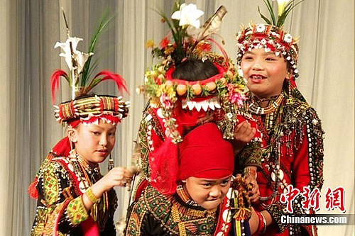 4月18日晚,“两岸情·台湾原住民小学传统歌谣会”在南京大学大礼堂拉开帷幕。在天籁般不加任何修饰的童声和声中,身着各色原住民服饰的台东县雾鹿国小利稻布农传统祭仪歌谣队和屏东县口社国小莎卡兰排湾文化传承队为到场的观众奉献了一场90分钟的台湾原生态音乐盛宴。